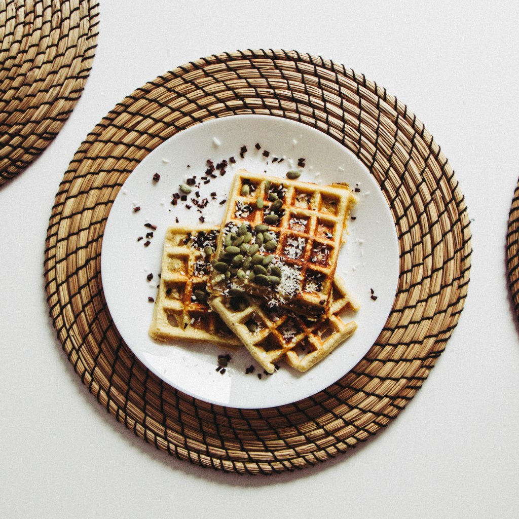 - Kepkite belgiškų vaflių keptuvėje arba kaip blynus ant lašelio kokosų aliejaus.